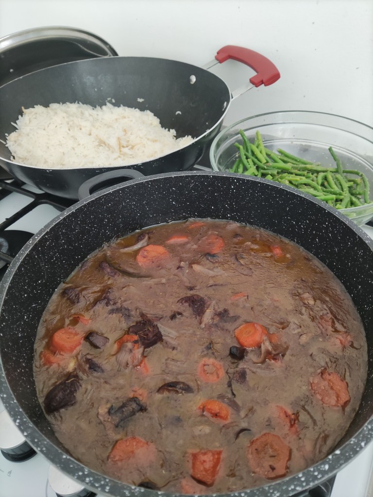 Servir ce plat avec du riz, et n’hésitez pas à le laisser mijoter sur la plata, c’est un plat qui est meilleur comme çà !