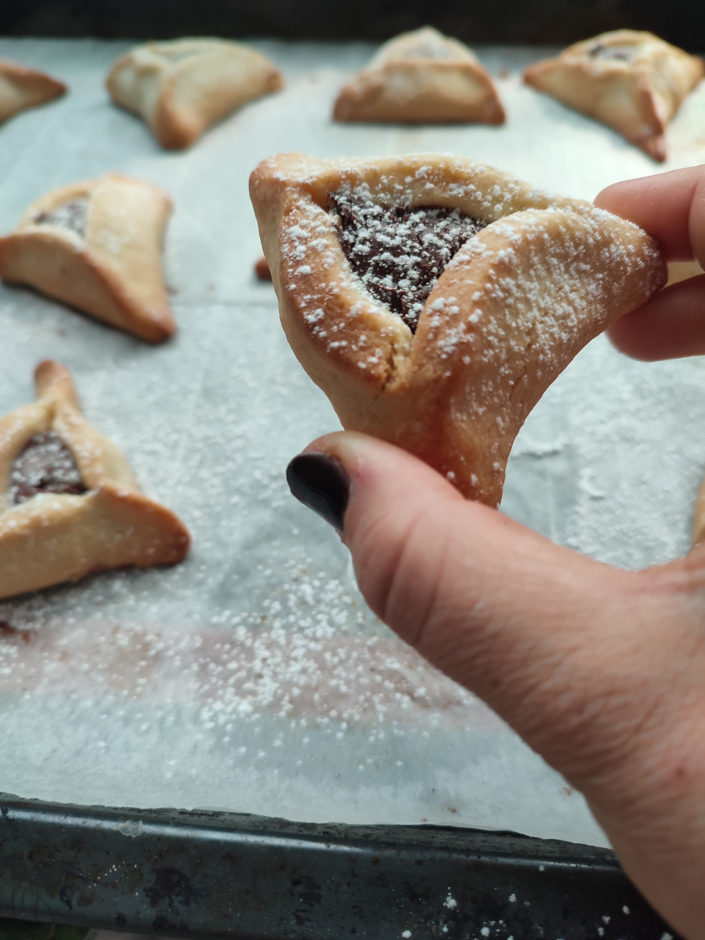 Bientôt Pourim! Et comme chaque fête juive, elle vient avec ces spécialités culinaires ! Impossible pour moi de ne pas vous partager une recette d’oreille d’aman (Ozné Aman). C’est une recette de biscuit sablé triangulaire fourré ! En général au chocolat ou de pate de date mais vous pouvez déclinez cette recette selon toutes vos envies et vos gouts !