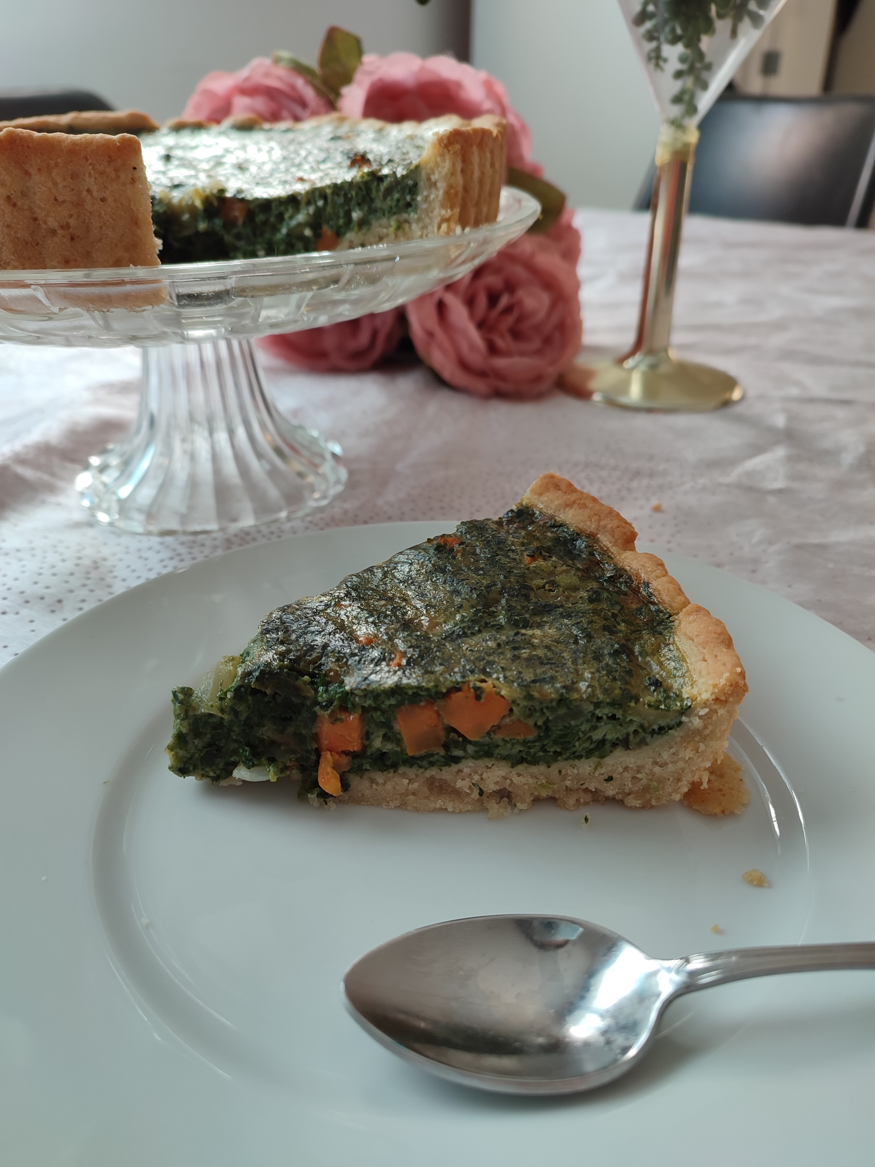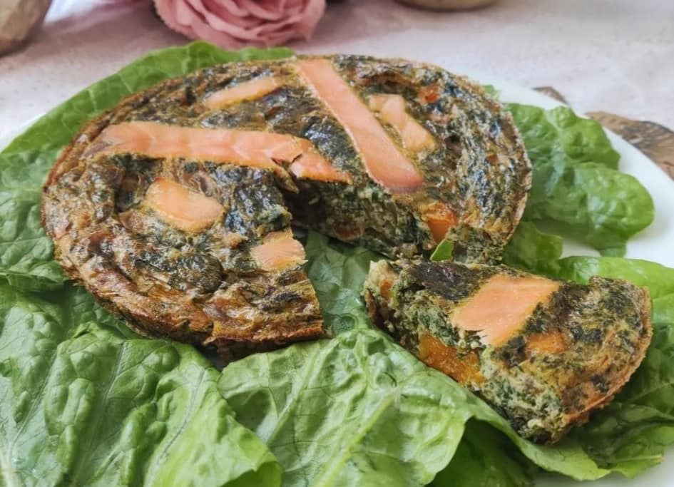 Dans un bol mélanger 2 œufs moyens avec 1 CS de crème liquide parvé du sel et du poivre. Incorporer les patates douces, épinards et l’oignon.