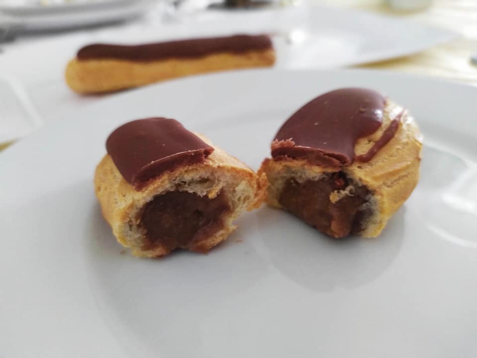 Faites 2 ou 3 petits trous à l’arrière des éclairs et garnissez les ! (pesez vos éclairs avant et après les avoir garnit pour être sure d’avoir mit assez de crème).